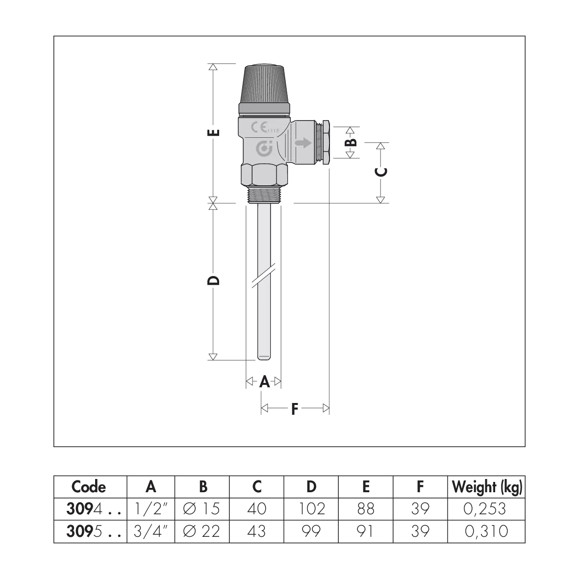 Temperature and pressure relief valve. For solar thermal systems, to protect the hot water storage. Certified to EN 1490 with settings: 7 - 10 bar.